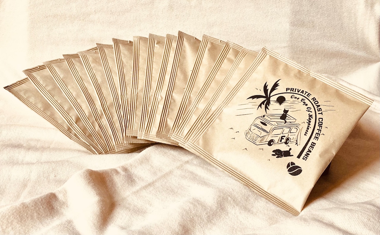 お手持ちのコーヒーカップやタンブラーにドリップバッグをセットしお湯を注ぐだけの手軽で簡単に本格深煎り珈琲が飲めます。